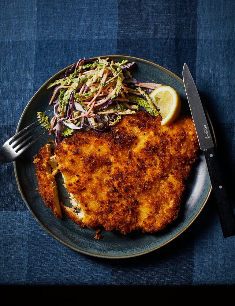 Some recipes don’t need explaining, they need executing properly. Chicken schnitzel is one of them. Crispy, golden chicken, thin and tender, finished with a squeeze of lemon and served with something fresh on the side. It’s simple, comforting, and endlessly satisfying. This version, paired with a sharp, creamy slaw, is one of the most cooked recipes from my book Speedy Comfort, and for good reason.